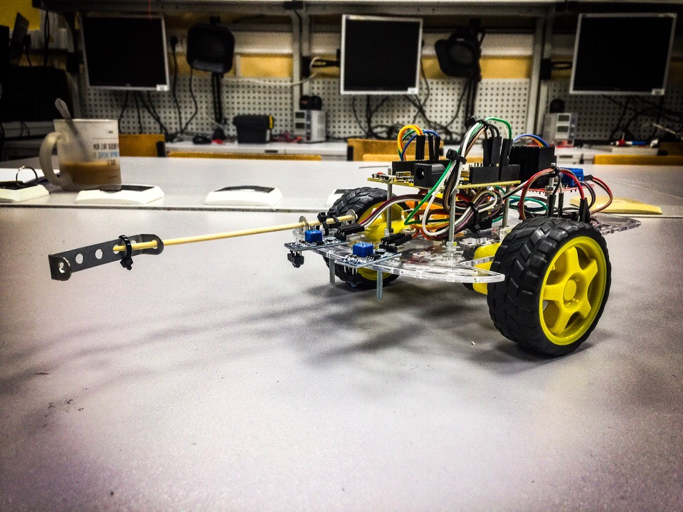 Был и другой интересный случай: подходит к нам участник с претензией: в вашей конструкции неправильно подключены датчики. Они, говорит, не работают. Мы как организаторы знаем, что все роботы были протестированы по трассе по написанной нами прошивке все выполнили задание. Конечно, мы отключили в роботе некоторые элементы - это нужно для того, чтобы участники самостоятельно выполнили некоторые подключения в плате. Таким образом данный участник не разобравшись в предоставленной ему схеме допустил грубое нарушение, подключив провод на 3 и 5 вольт, и предъявив это за "неправильную сборку организаторами" автоматом получил - 2 балла. Больше таких претензий не поступало от участников. С заданием справились, почти все. Ну вы уже понимаете кто не справился...