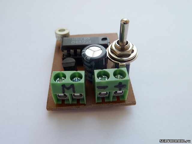 Электронный регулятор имеет широкий диапазон питающих напряжений от 3,6 до 12 вольт. Нагрузочная способность выходного транзистора позволяет подключать к регулятору два низковольтных мотора одновременно. Электронный регулятор можно использовать в схемах управления моторами робота.